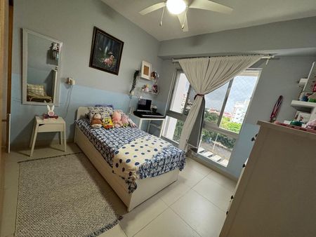 El apartamento cuenta con 3 habitaciones, la principal con baño privado, estudio, 2.5 baños, cuarto de servicio y 2 parqueos. Su distribución práctica y los acabados de alta calidad hacen que cada espacio sea funcional, acogedor y fácil de disfrutar.