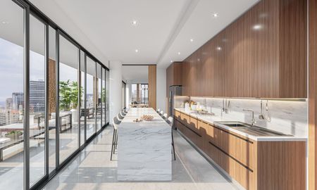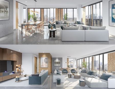 a zonas sociales y de amenidades. El proyecto cuenta con un estilo minimalista con acabados de lujo.