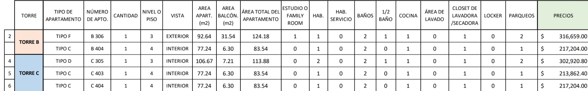 Cada bloque cuenta con cuatro niveles de apartamentos de 1 y 2 habitaciones, que se caracterizan por su contacto con el exterior, iluminacion natural y ventilacion cruzada, ademas de una muy funcional distribucion interior y amplios balcones con vistas privilegiadas al area comun y al hermoso paisaje que posee la zona. Su principal amenidad es una maravillosa y amplia área común compuesta de una gran piscina, gazebo lounge, solárium, área para BBQ, Gimnasio y parque infantil.
